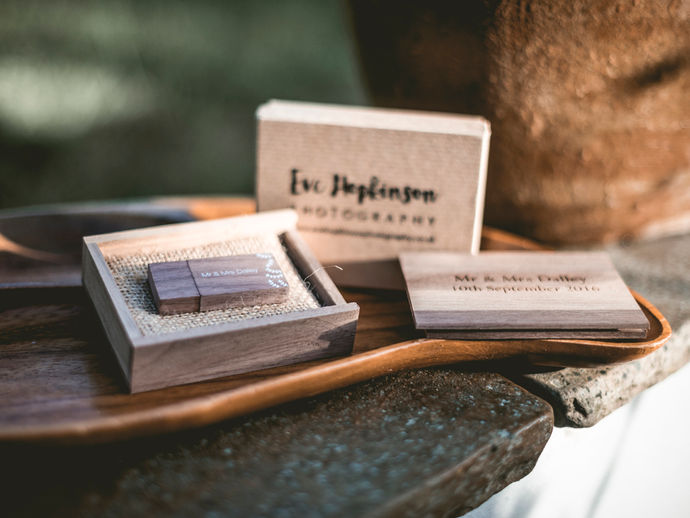 Lovely Wooden USB Wedding Boxes // Eve Hopkinson Photography